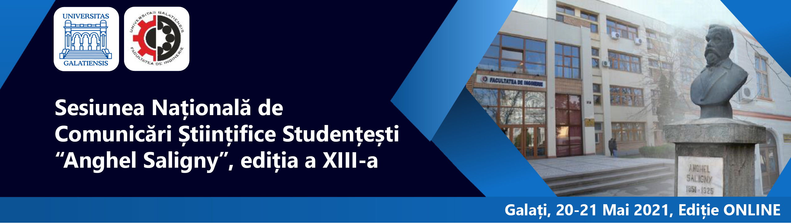Facultatea de Inginerie vă învită să participaţi la Sesiunea Naţională de Comunicări Ştiinţifice Studenţeşti "Anghel Saligny" (SNCSS "Anghel Saligny"), ediţia a XIII-a, organizată în perioada 20-21 Mai 2021. Sesiunea se va desfăşura la ONLINE, utilizând platforma Microsoft TEAMS.